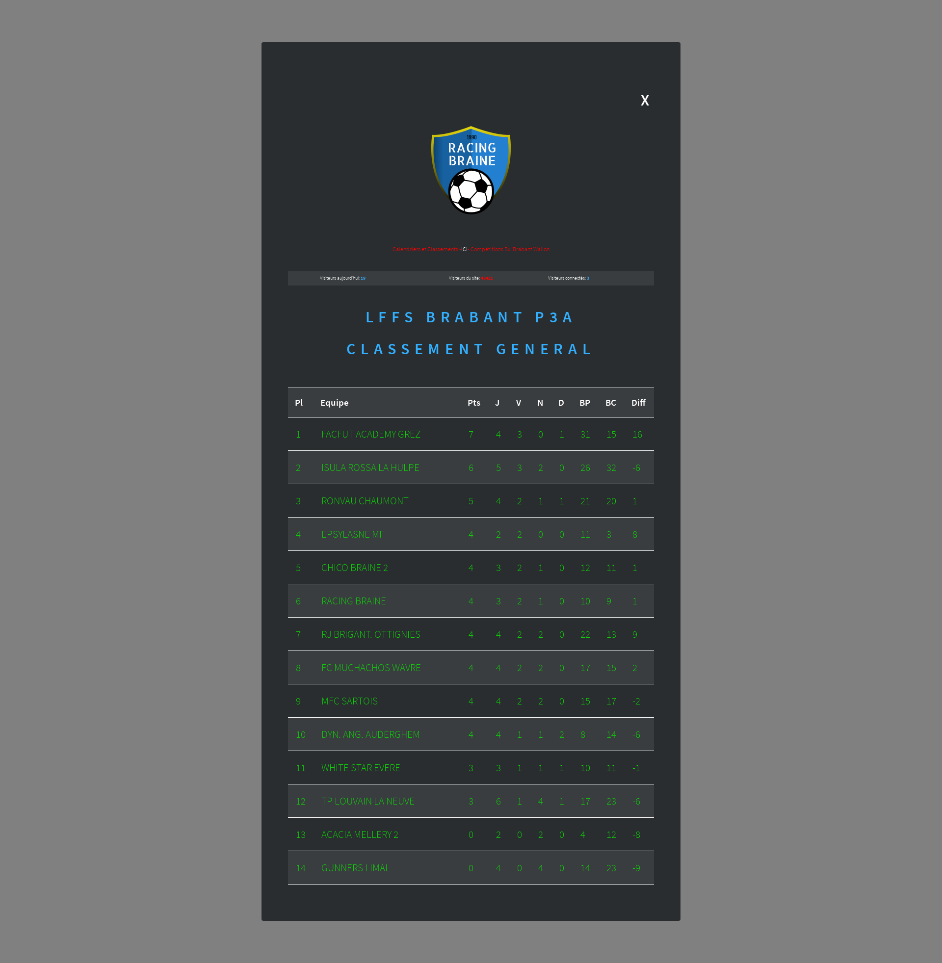 X Calendriers et Classements -ICI- Compétitions Bxl Brabant Wallon Visiteurs aujourd'hui: 5 Visiteurs du site: 65184 Visiteurs connectés: 1 Saison 2020-2021 Votre navigateur ne supporte pas l'élément iframe Votre navigateur ne supporte pas l'élément iframe